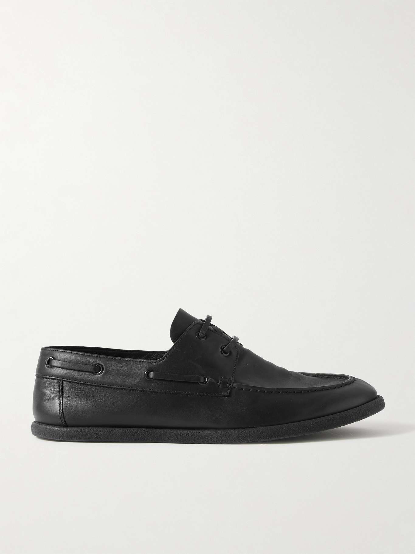 The Row's 'Novus' loafers are modelled after traditional sailor styles. They're crafted from smooth black leather and have tonal laces for a clean finish.