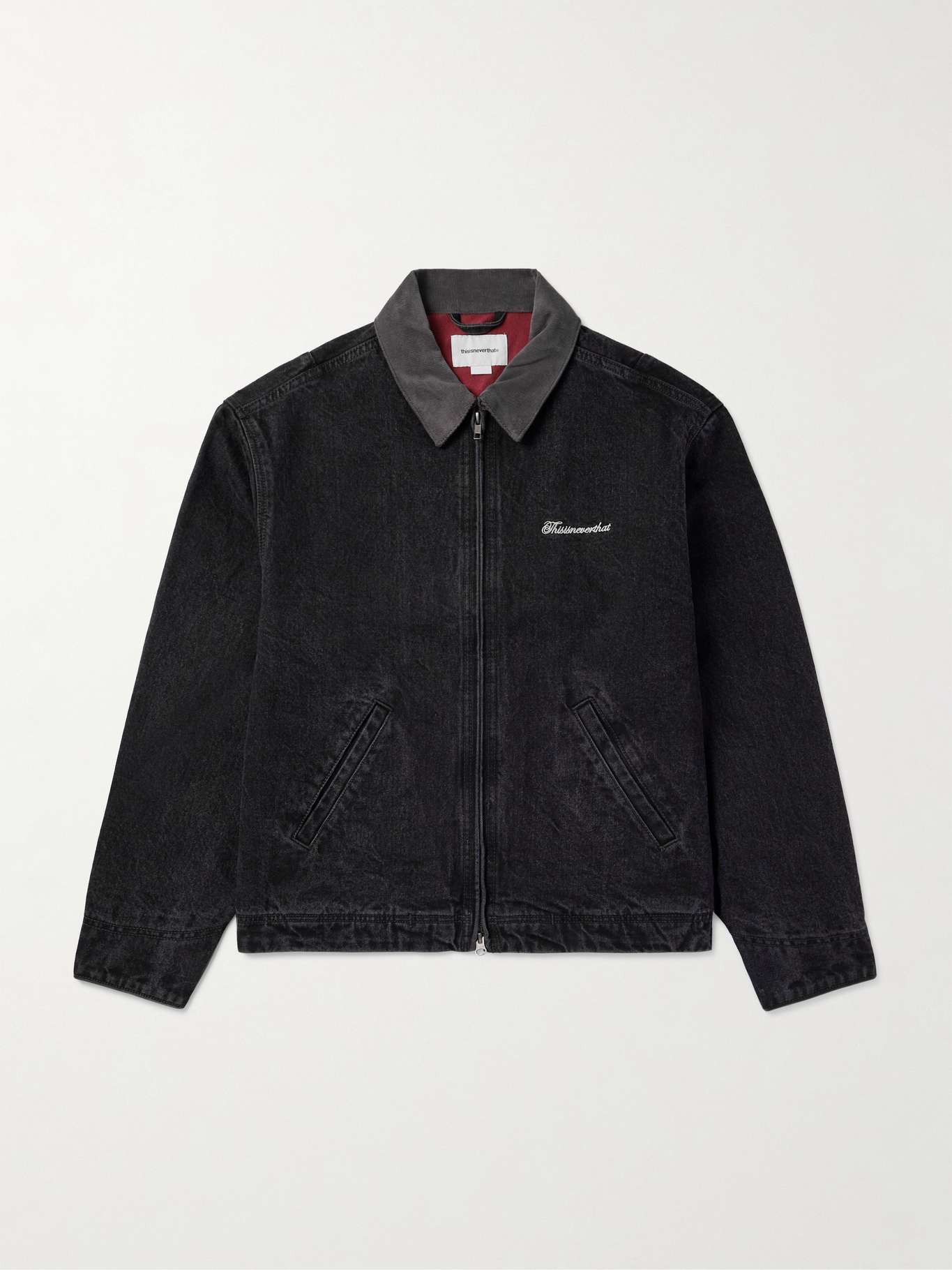 THISISNEVERTHAT Logo-Embroidered Corduroy-Trimmed Garment-Washed Denim Jacket