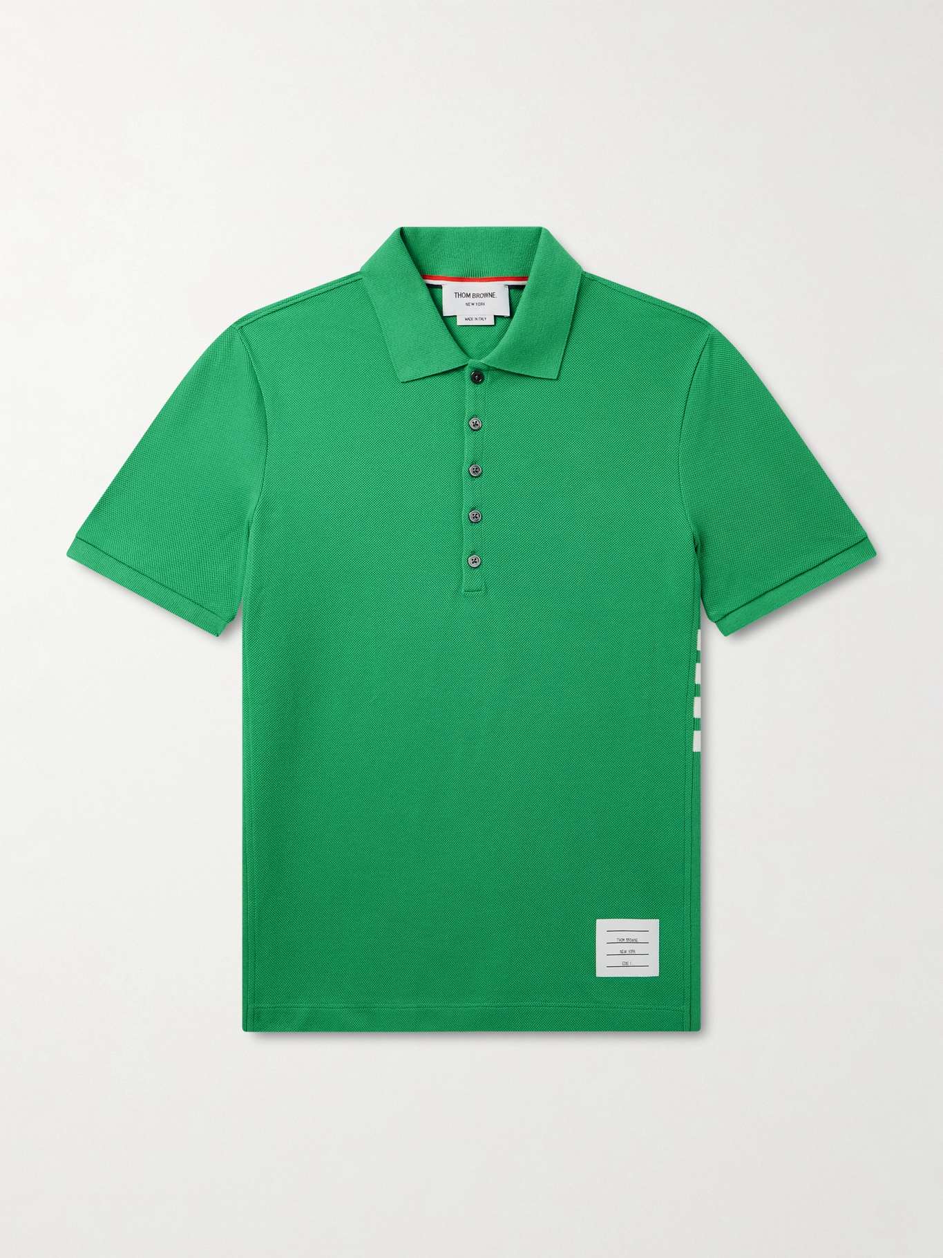 THOM BROWNE Logo-Appliquéd Striped Cotton-Piqué Polo Shirt