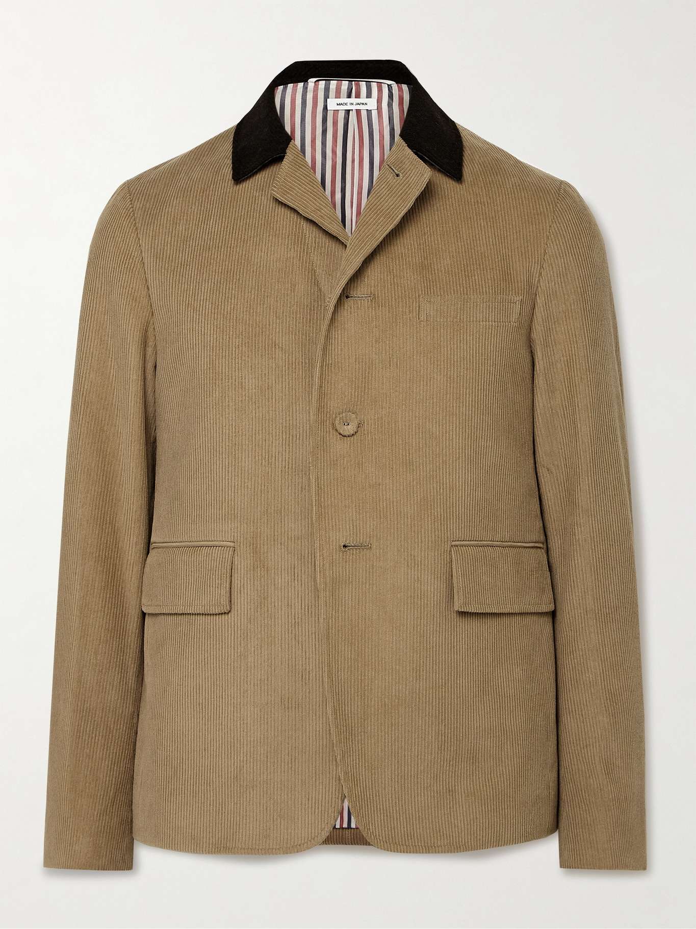 Designed to be worn with the matching trousers, Thom Browne's blazer has been made in Japan from cotton-corduroy. It's detailed with a contrasting dark-brown wool collar and has the label's signature grosgrain stripes along the inside of the functioning buttoned cuffs.