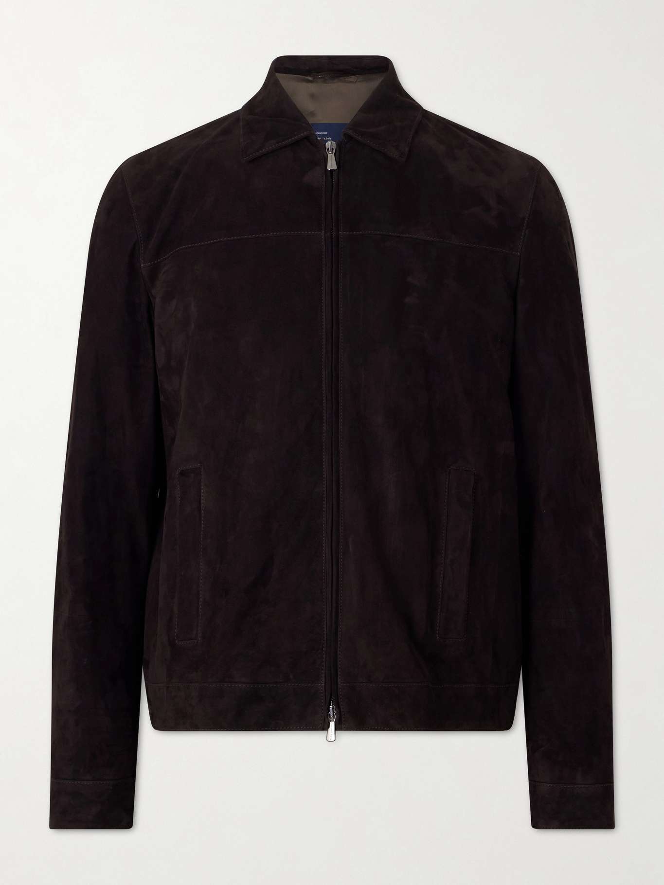 Thom Sweeney's bomber jacket is crafted from suede, giving it a soft, velvety handle with natural depth. Designed with a shirt-style collar, it refines the classic silhouette, while the construction keeps the profile clean and composed.