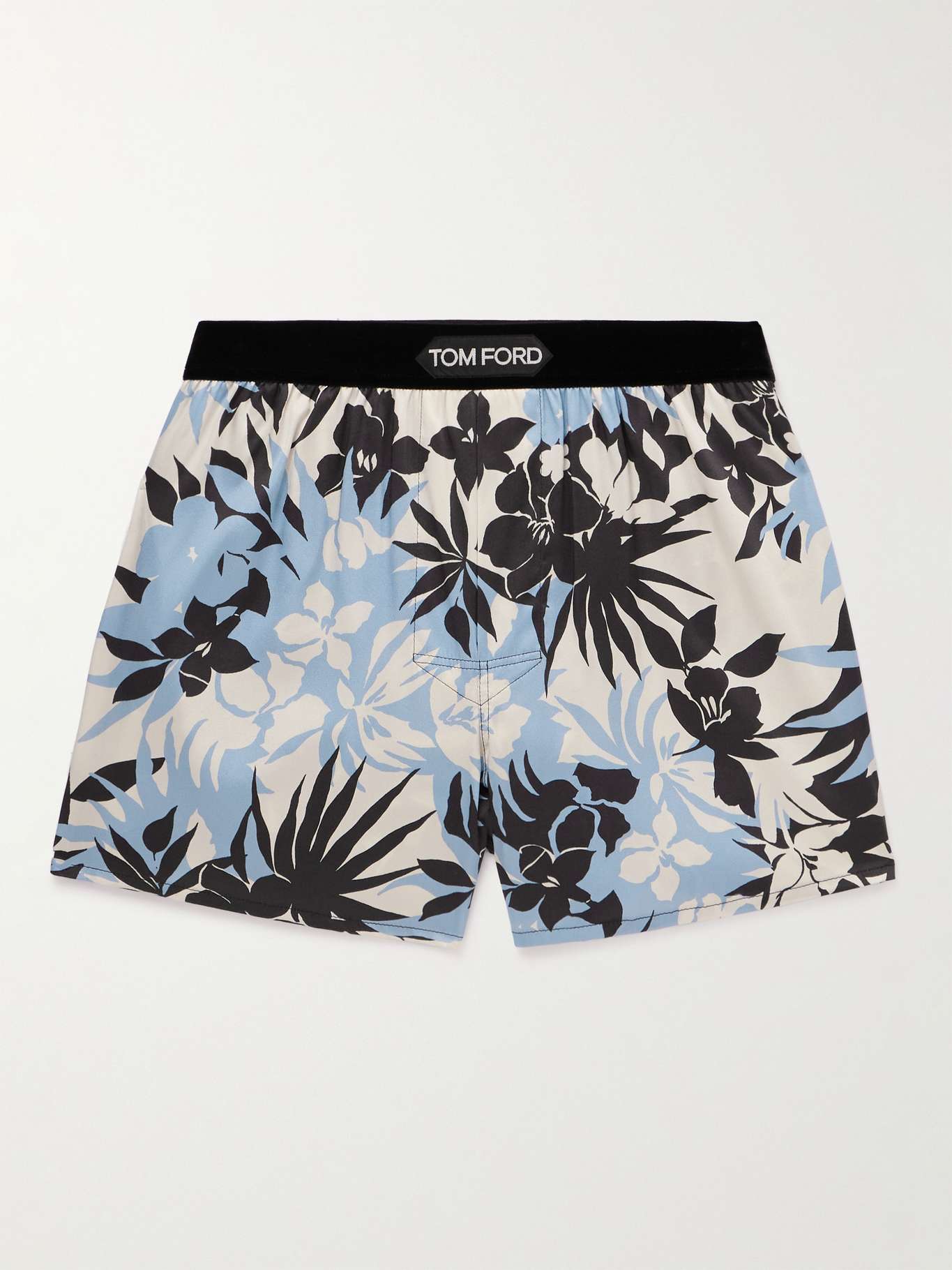 TOM FORD Velvet-Trimmed Floral-Print Silk-Satin Boxer Shorts