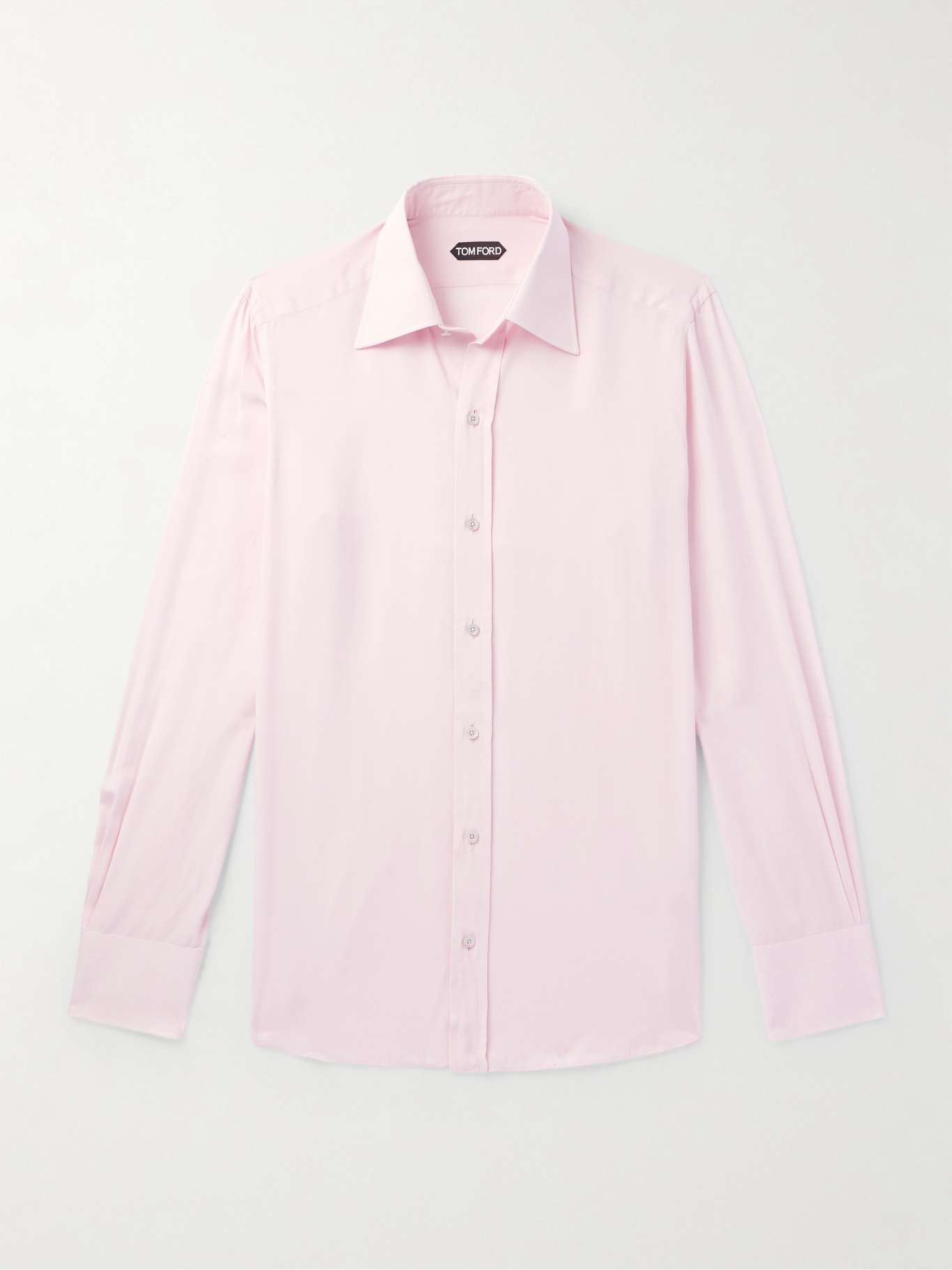 TOM FORD's cutaway-collar shirt is tailored from smooth Lyocell-blend poplin and fastens with lustrous mother-of-pearl buttons. Complement the soft pink shade with a navy or grey suit.