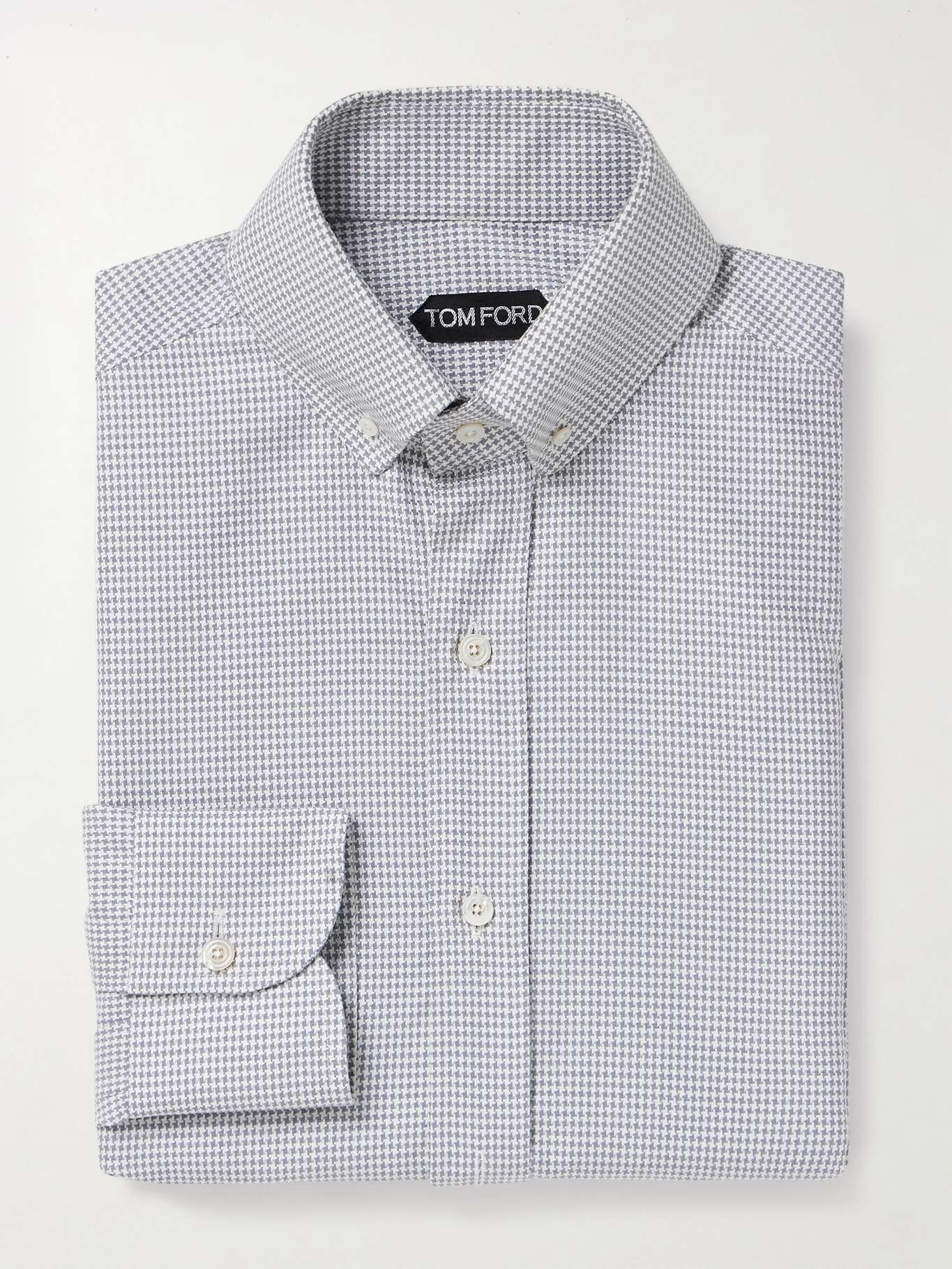 TOM FORD Slim-Fit Button-Down Collar Puppytooth Cotton and Lyocell-Blend Shirt