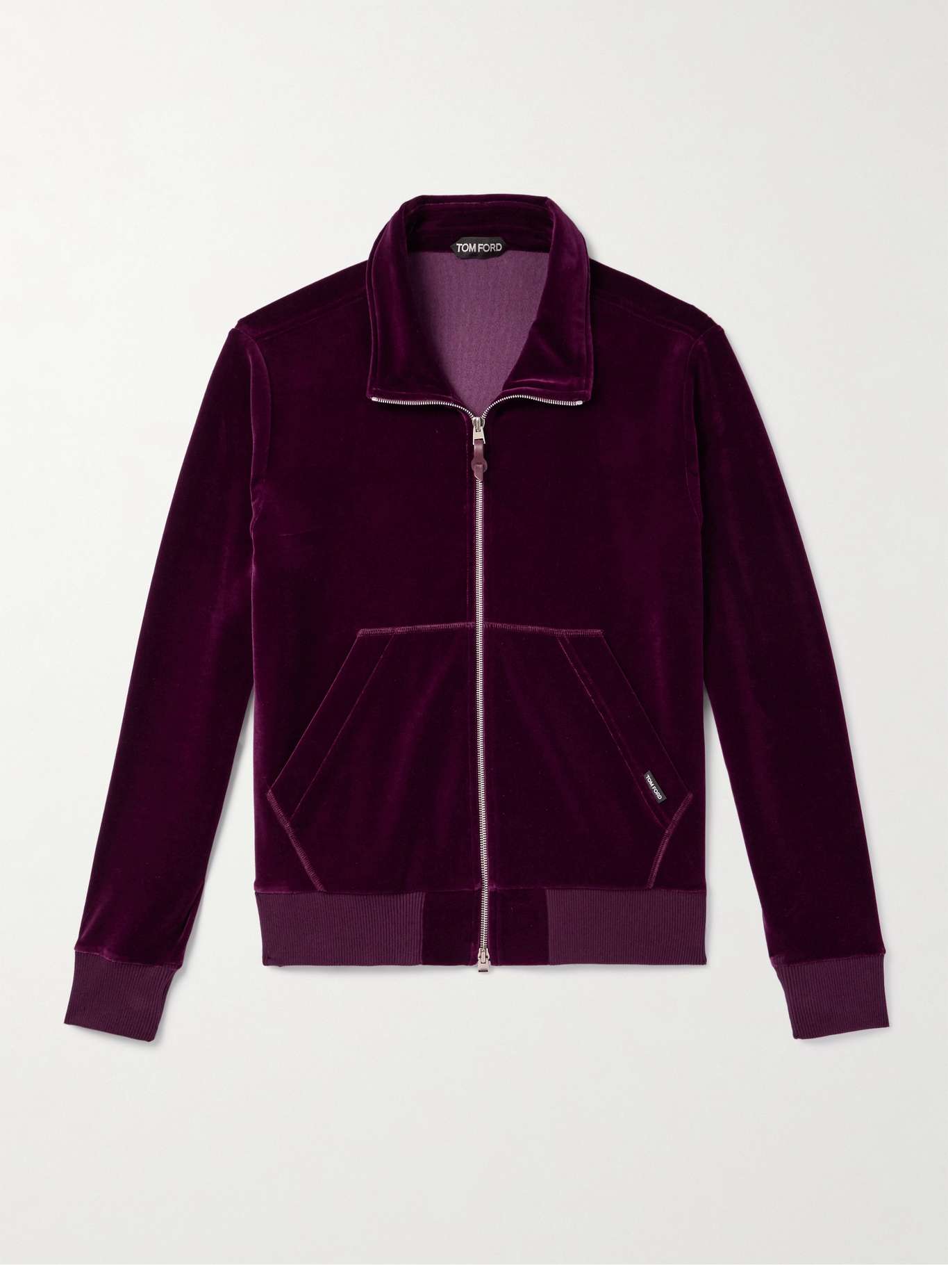 TOM FORD's elevated basics are prized for their expert craftsmanship and use of premium materials. Inspired by retro sportswear, this track jacket has been made in Italy from lustrous cotton-blend velour and features a signature logo-debossed leather zipper pull.