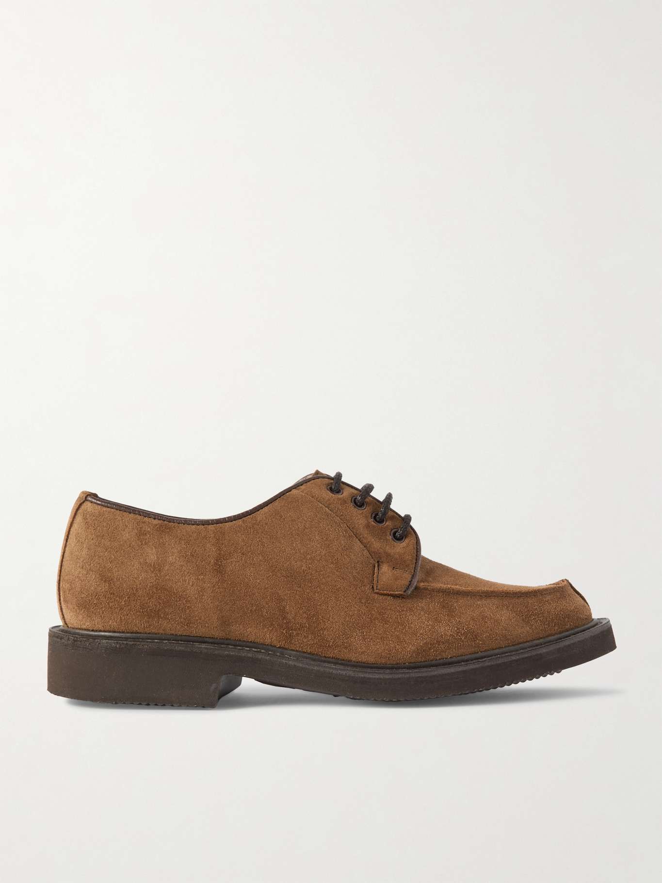 Tricker’s 'Stuart' Derby shoes are defined by split apron toes that give them a more classic, casual feel. Trimmed with dark-brown leather, they've been made in Italy from brushed-suede and set on durable Vibram Gumlite soles for improved grip.