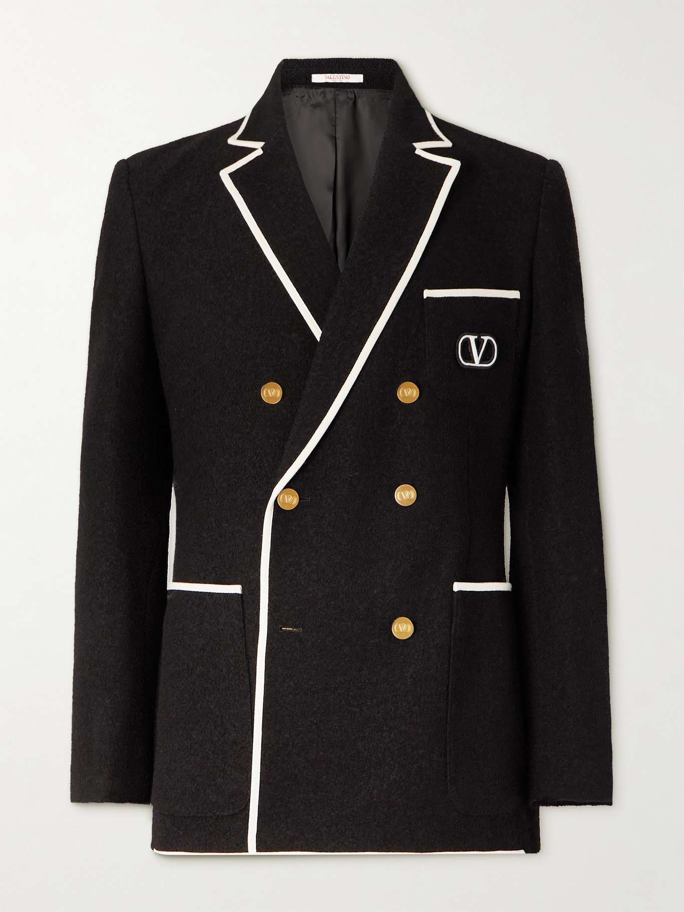 Between the white trims and gold-tone branded buttons, Valentino's double-breasted blazer has a nautical feel. It's been expertly tailored in Italy from wool-blend bouclé and embroidered with the 'VLOGO' at the chest pocket.