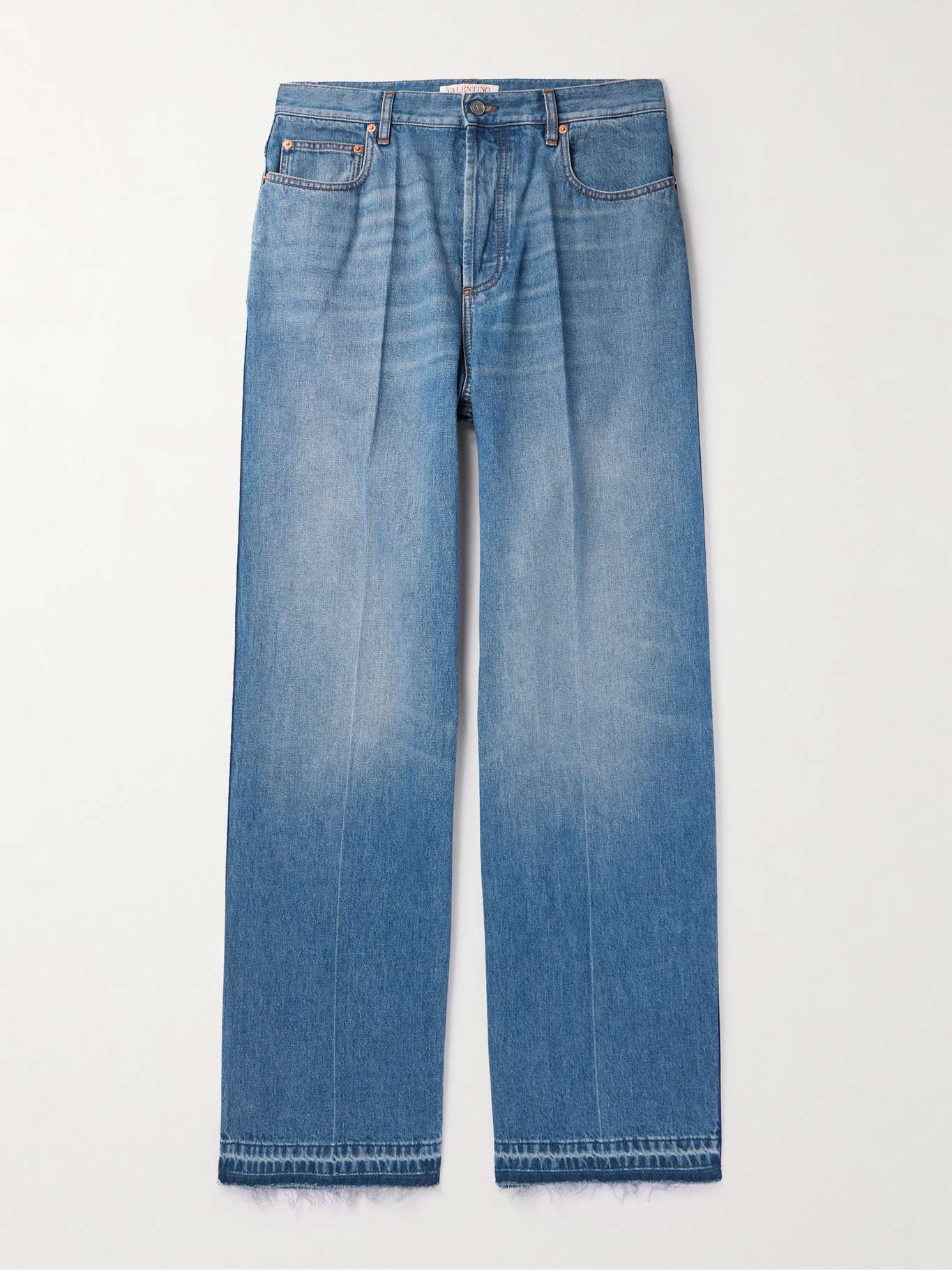 Valentino Garavani's jeans are traced with soft fringing around the cuffs to emphasise the wide-leg shape. They're cut from denim washed in a versatile blue and are artfully faded for a lived-in feel.