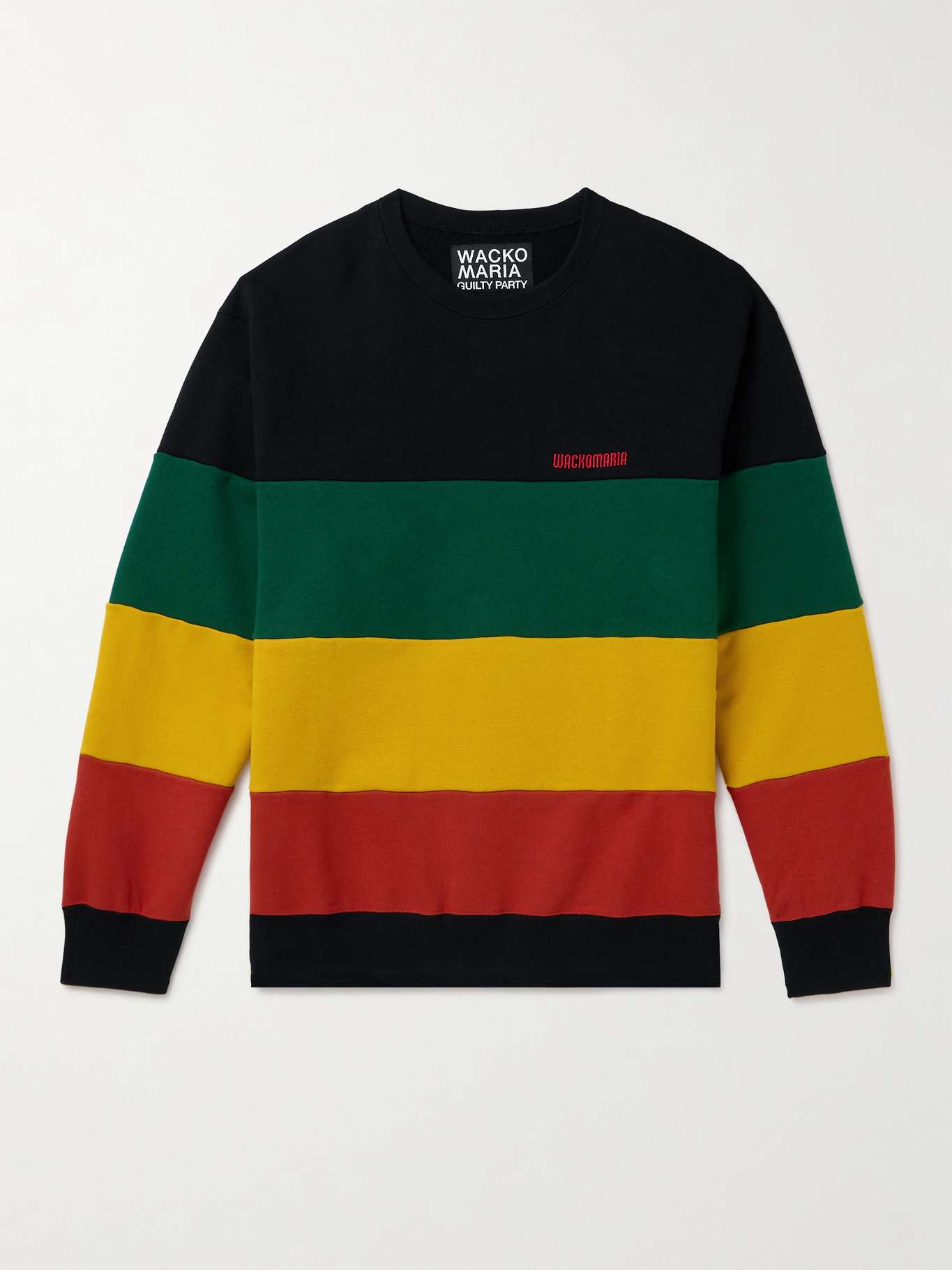 Wacko Maria's sweatshirt is patterned with bold stripes in a classic combination of green, yellow and red. Made in Japan from fleece-back cotton-jersey, it's cut for a relaxed fit and embroidered with a signature logo at the chest.