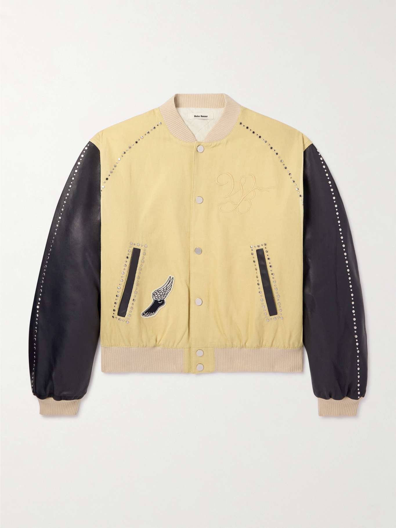 WALES BONNER Sky Leather-Trimmed Cotton and Linen-Blend Varsity Jacket
