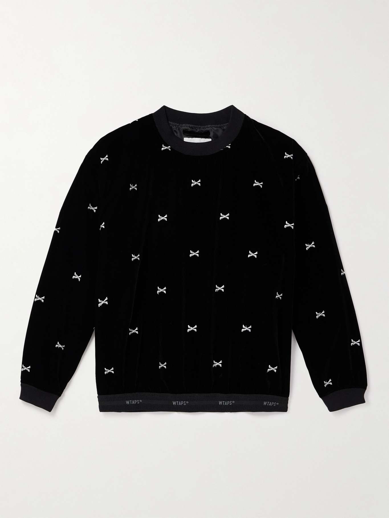 Fans of WTAPS® will instantly recognize the skull and crossbones embroidery mapping this sweatshirt. It's cut from plush velour and finished with an elasticated hem that's jacquard-woven with the label's logo. Style yours with the matching drawstring trousers.