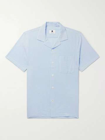 Miyagi Camp-Collar Striped Seersucker Shirt