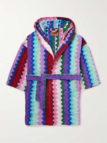 Arpeggio Striped Cotton-Terry Hooded Robe