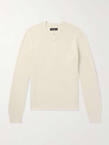 Slim-Fit Ribbed Stretch Lyocell and Cotton-Blend Henley T-Shirt