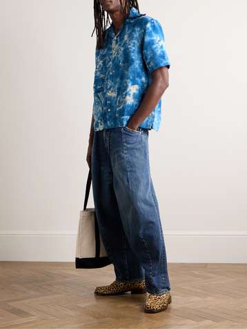 Cosmic Camp-Collar Tie-Dyed Linen and Cotton-Blend Shirt