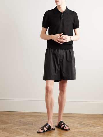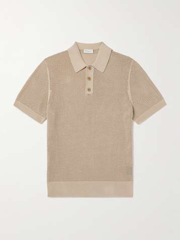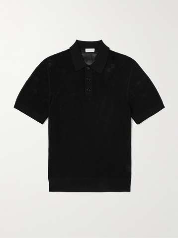 Slim-Fit Striped Pointelle-Knit Polo Shirt