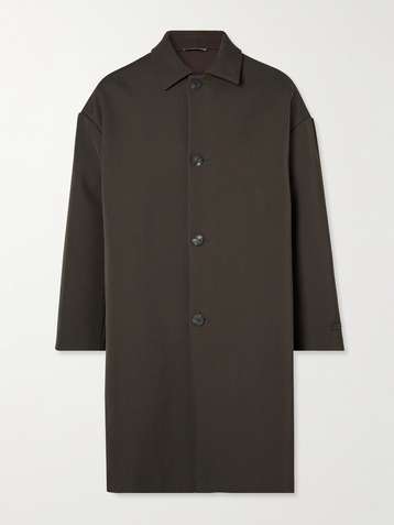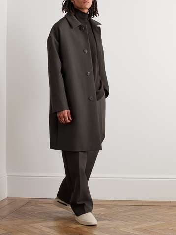 Oversized Double-Breasted Logo-Appliquéd Wool-Blend Flannel Coat