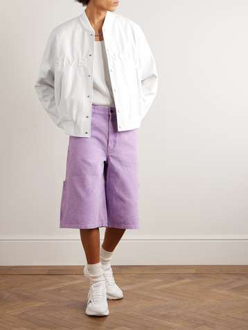 Leather-Trimmed Cotton-Blend Harrington Jacket