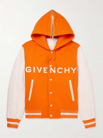 Logo-Embossed Wool-Blend and Full-Grain Leather Jacket