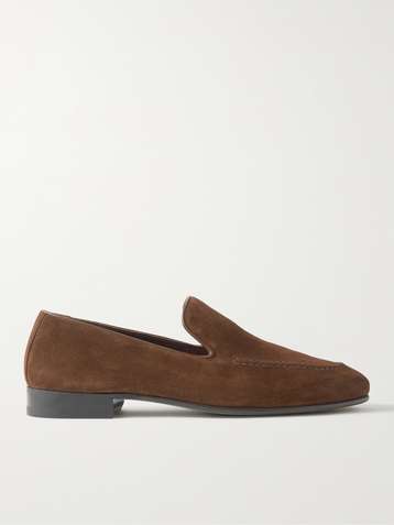 Plymouth Collapsible-Heel Suede and Leather Penny Loafers