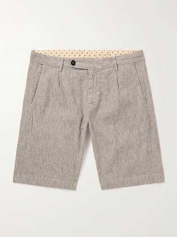 Kevin Straight-Leg Pleated Linen Drawstring Shorts