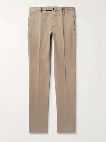 Slim-Fit Straight-Leg Pleated Cotton-Twill Chinos