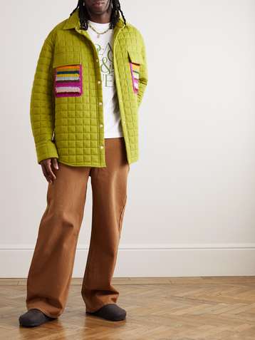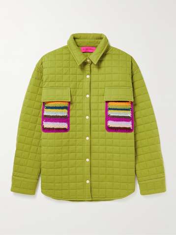 Crochet-Trimmed Quilted Cotton-Jersey Shirt Jacket