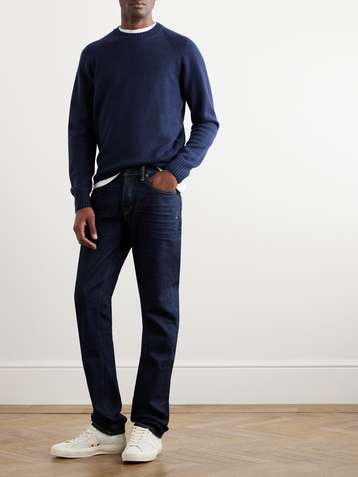 Slim-Fit Logo-Embroidered Brushed-Cashmere Sweater