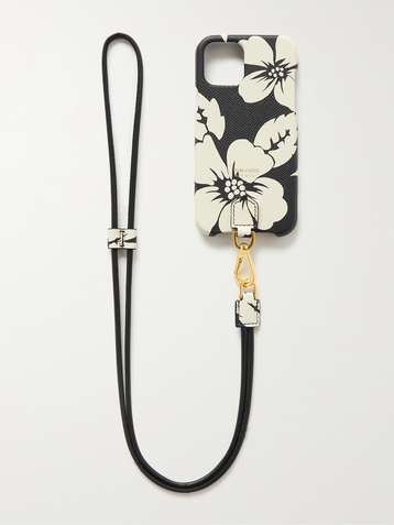 Floral-Print Full-Grain Leather iPhone 11 Pro Case with Lanyard