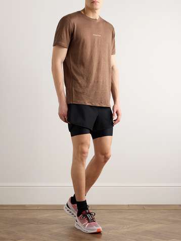Layered Straight-Leg Logo-Print Shell and Stretch Recycled-Jersey Shorts