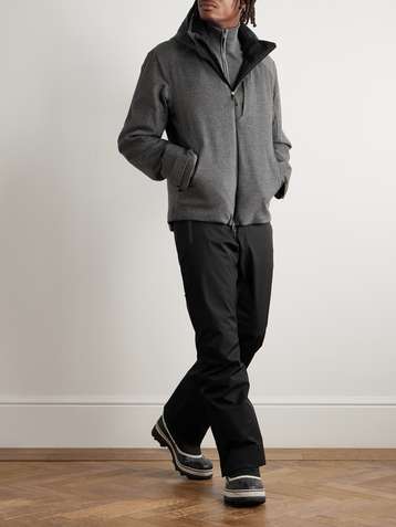 Belted Stretch-Jersey Trimmed Padded Wool-Felt Ski Jacket