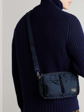 Puzzle Edge Large Leather-Trimmed Checked Brushed-Suede Messenger Bag