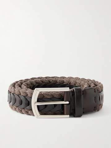 3cm Leather-Trimmed Braided Cotton and Linen-Blend Belt