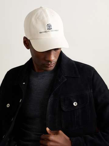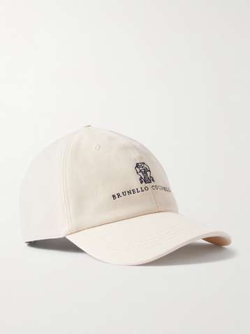 Logo-Embroidered Leather-Trimmed Cotton-Twill Baseball Cap