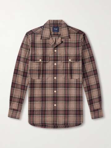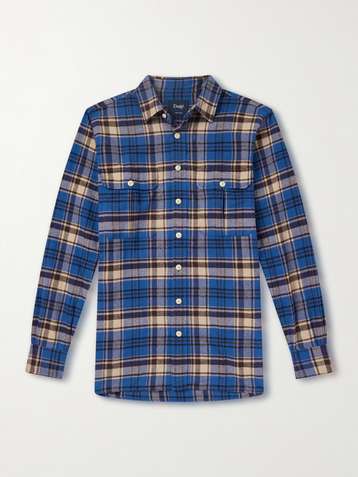 Embroidered Patchwork Checked Cotton-Flannel Overshirt