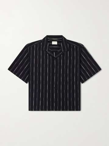 Camp-Collar Striped Cotton-Blend Jacquard Shirt