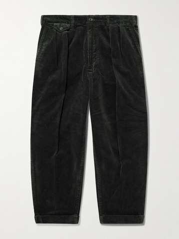 Cropped Pleated Cotton-Corduroy Trousers
