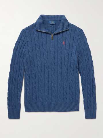 Logo-Embroidered Cable-Knit Cotton Half-Zip Sweater