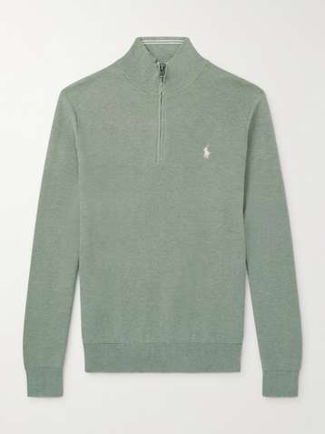 Logo-Embroidered Honeycomb-Knit Cotton Half-Zip Sweater