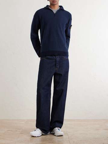 Logo-Appliquéd Cotton-Blend Half-Zip Sweater