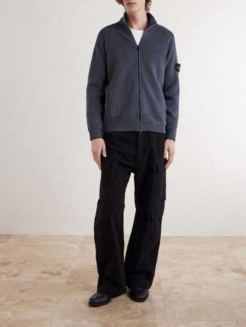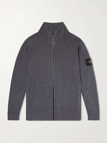 Logo-Appliquéd Ribbed Cotton-Blend Zip-Up Cardigan