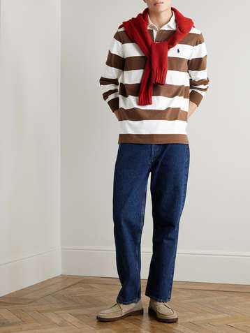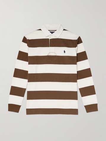 Logo-Embroidered Striped Cotton-Jersey Polo Shirt