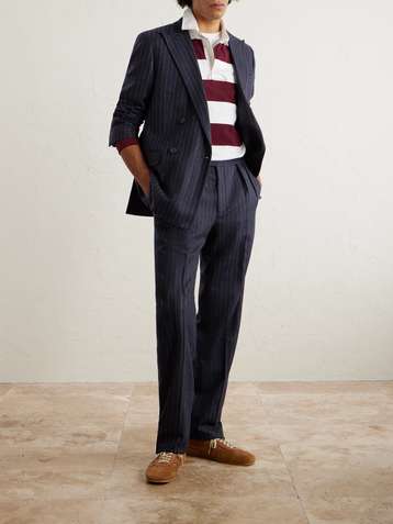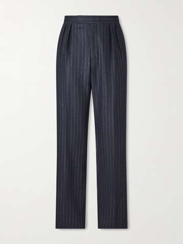 Straight-Leg Pleated Pinstriped Merino Wool Trousers