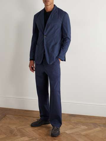 Straight-Leg Garment-Dyed Cotton-Blend Suit Trousers