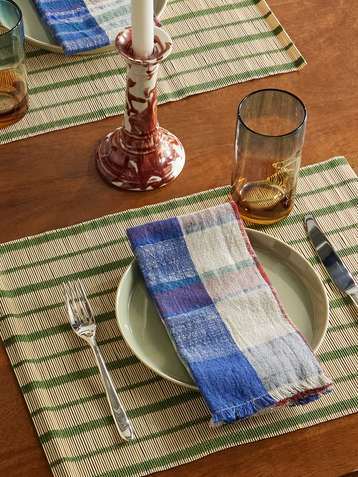 Marabar Set of Two Fringed Checked Cotton-Gauze Napkins