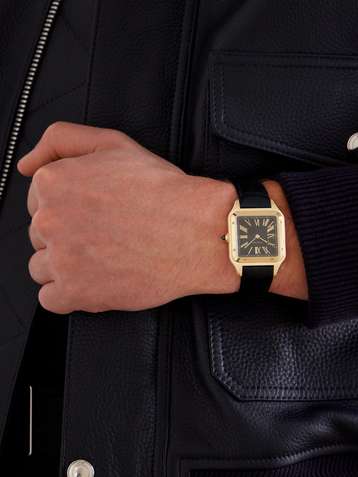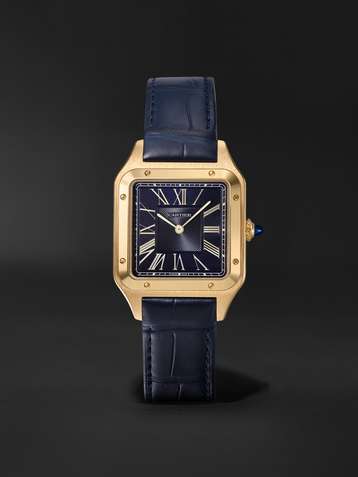 Santos-Dumont Large 43.5mm 18-Karat Gold and Alligator Watch, Ref. No. CRWGSA0115
