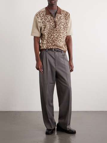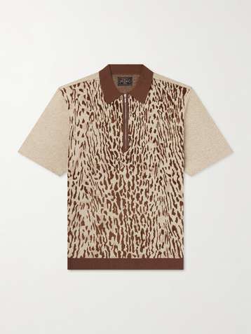 Leopard-Jacquard Cotton-Blend Half-Zip Polo Shirt