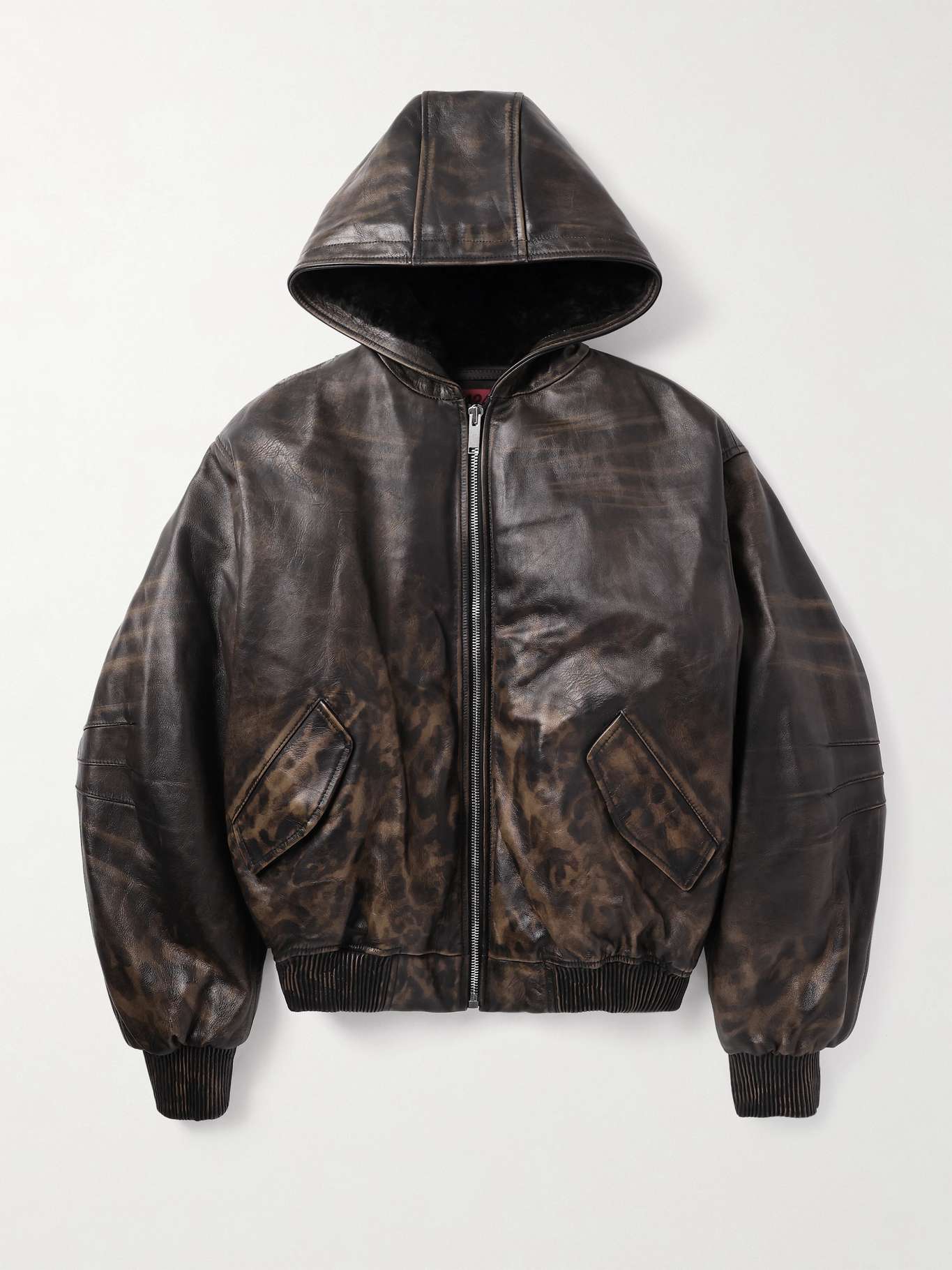 424 considers leopard-print the "new camouflage". Subtly faded into the leather of this bomber jacket, it cut in a boxy shape, with elasticated trims to cinch the fit.