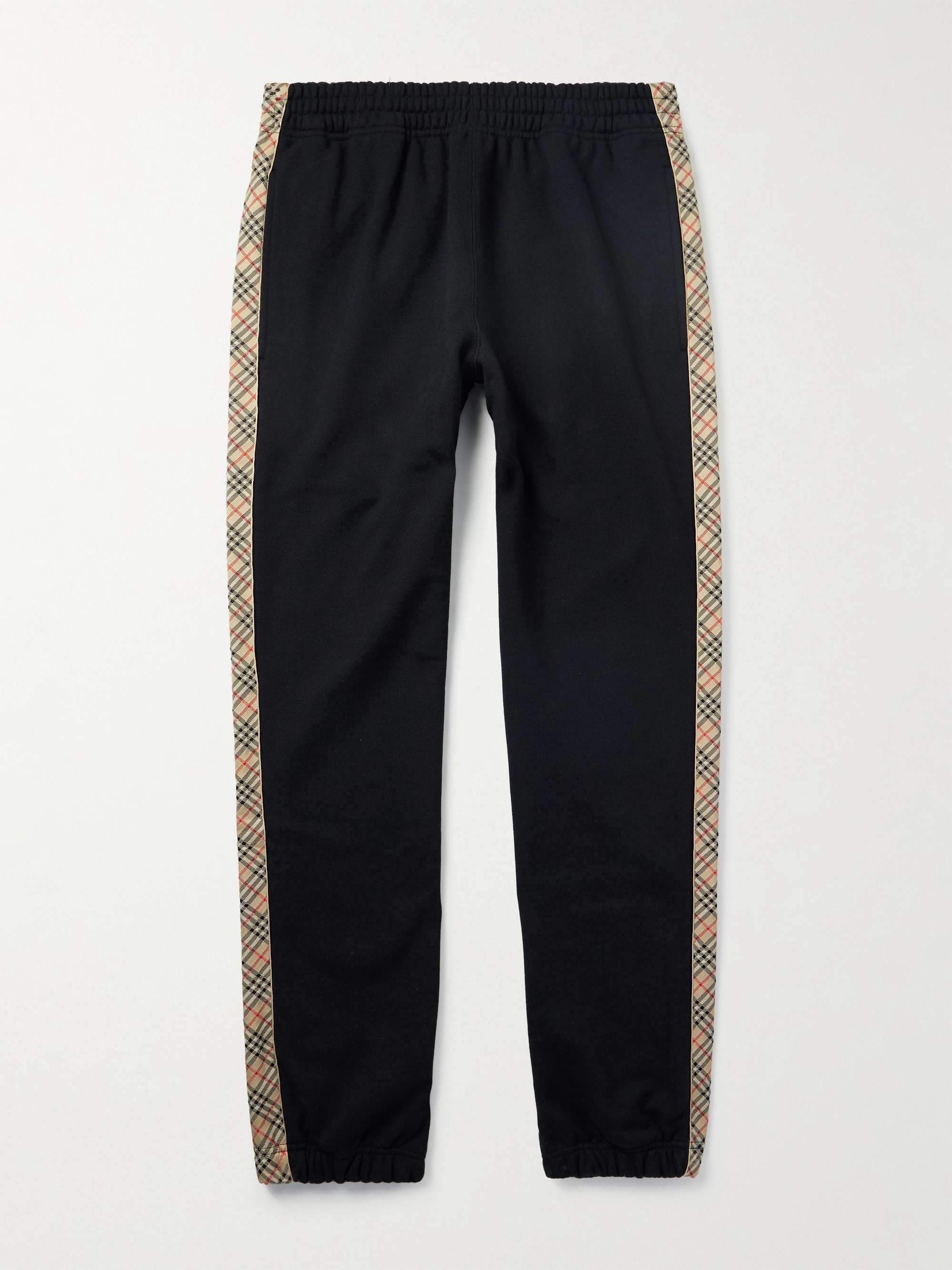 BURBERRY Tapered Logo-Embroidered Checked Cotton-Jersey Sweatpants