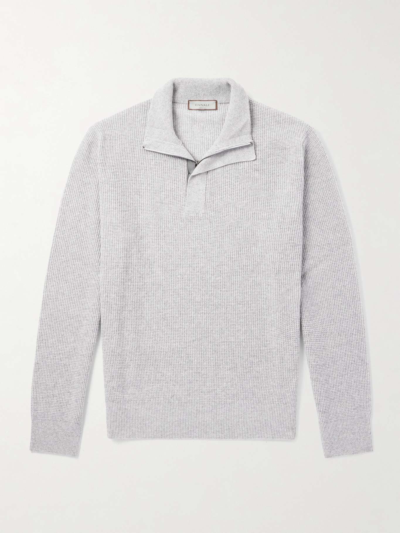 Canali's sweater is trimmed with smooth suede at the half-zip placket, which gives it a little extra structure. It's knitted from sumptuous wool and cashmere-blend using a ribbed stitch that'll add depth to your outfits.